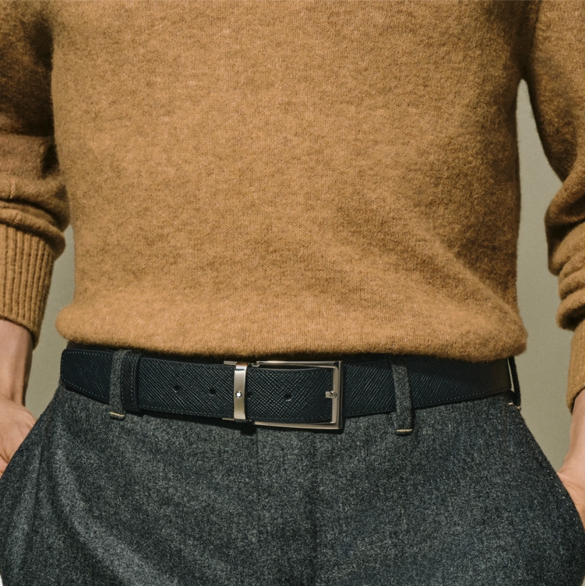 Двухсторонний мужской ремень Montblanc: кожа черного и коричневого цвета 35 мм от магазина премиальных ручек Premium Pens в Нижневартовске.