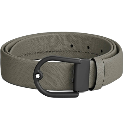 Кожаный ремень 35 мм из кожи серого цвета, пряжка в форме подковы от магазина премиальных ручек Premium Pens в Нижневартовске.